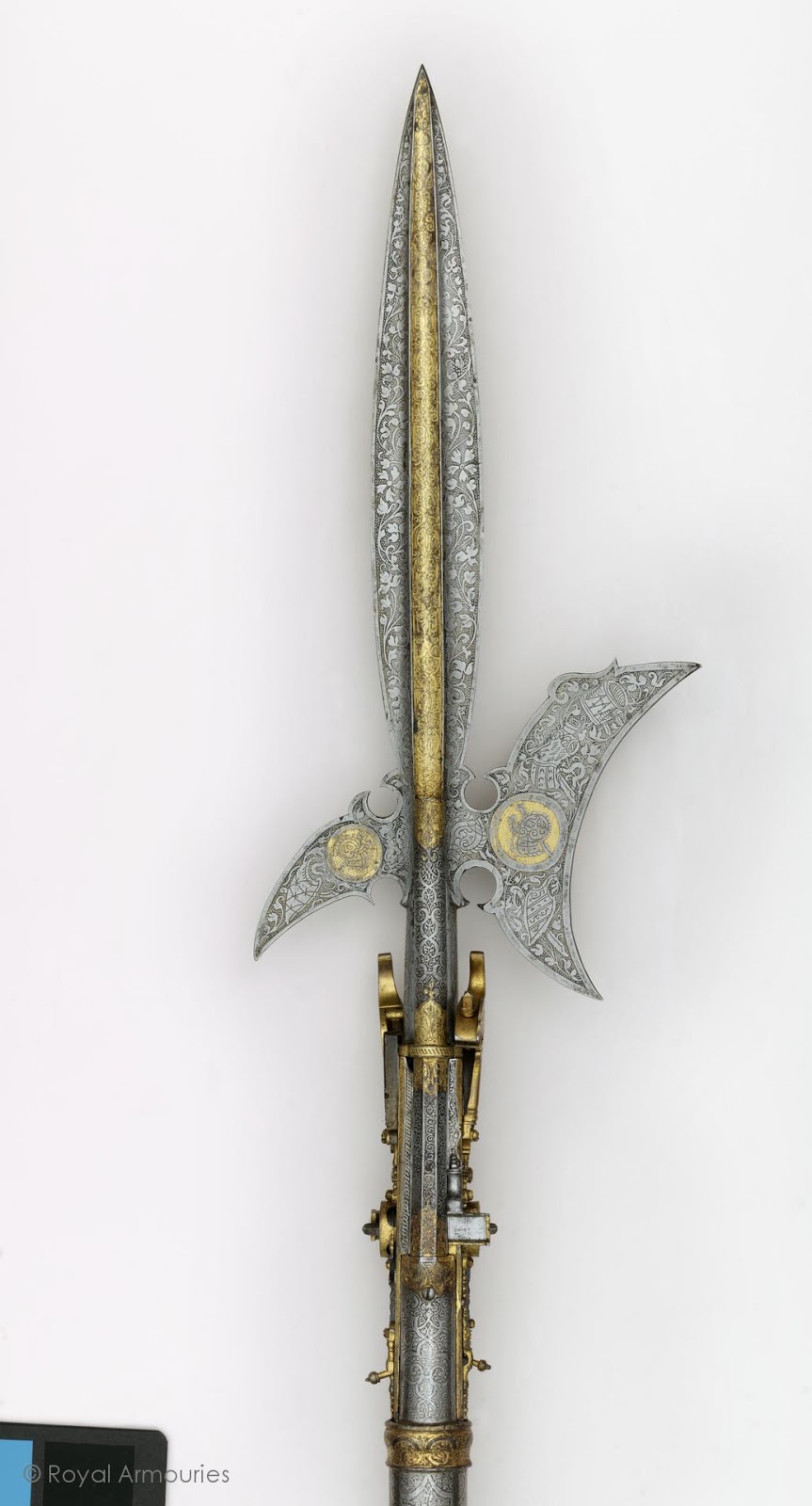 boltarde(s); a combinade made of the bringing together of a halberd and two wheel-lock pistols formed as part of the shaft, one short barrel on either side of the axe-and-spike head. The wheel locks are fired by means of triggers farther down, just above the rondel that protects the hand. Shallow grooves run down the middle of the blade to allow the ball to fly unhindered. An invention of the Sebastians, it is unwieldy but highly effective in the right circumstances, although boltardes have not gained much popularity in the Haacobin Empire.