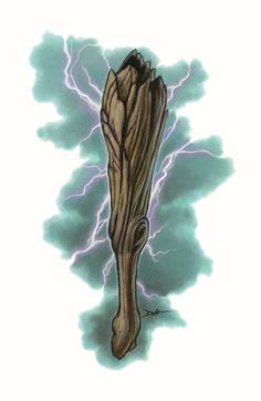 This club is splintered and burnt, taken from a tree set aflame by lightning.